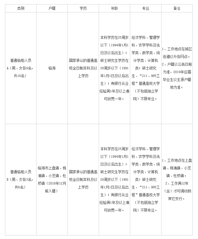 原標(biāo)題:浙江臨海農(nóng)村商業(yè)銀行股份有限公司2019年招聘簡(jiǎn)章